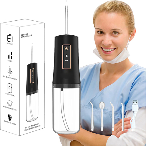 Лидер продаж: перезаряжаемый водонепроницаемый портативный электрический ирригатор для чистки зубов с 3 режимами и 4 насадками