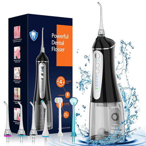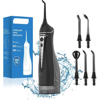 Профессиональный USB-заряжаемый водонепроницаемый ирригатор для зубов 300 мл с 5 насадками и 4 режимами работы