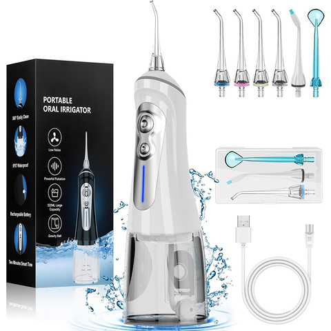 אלחוטי נייד עמיד למים 320 מ "ל השקה אוראלי מי flosser שיניים עם 6 מצבים מתכווננים עבור שיניים לבחור ניקוי שיניים